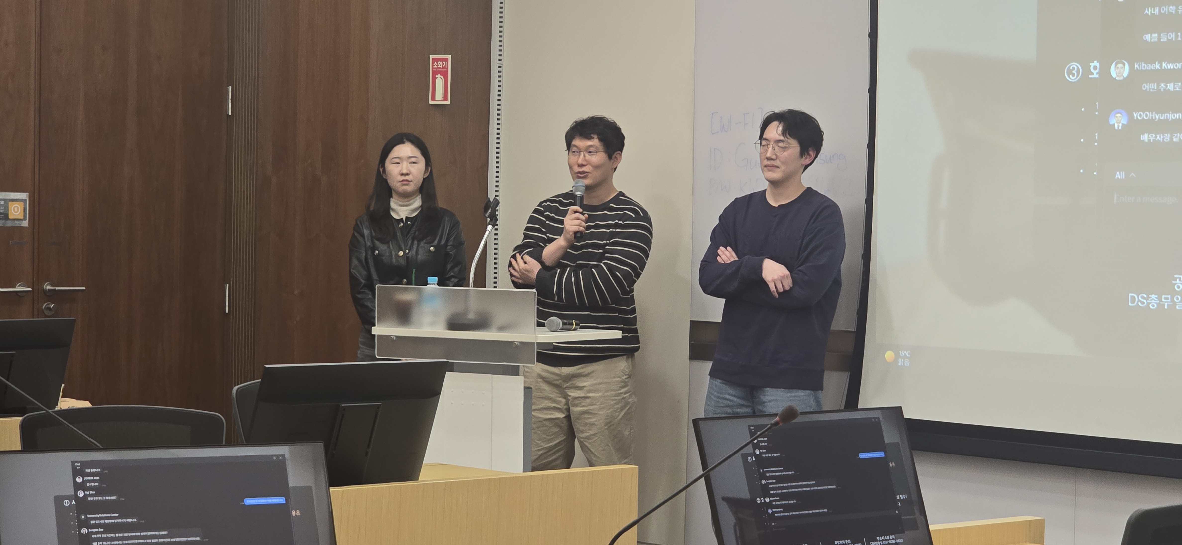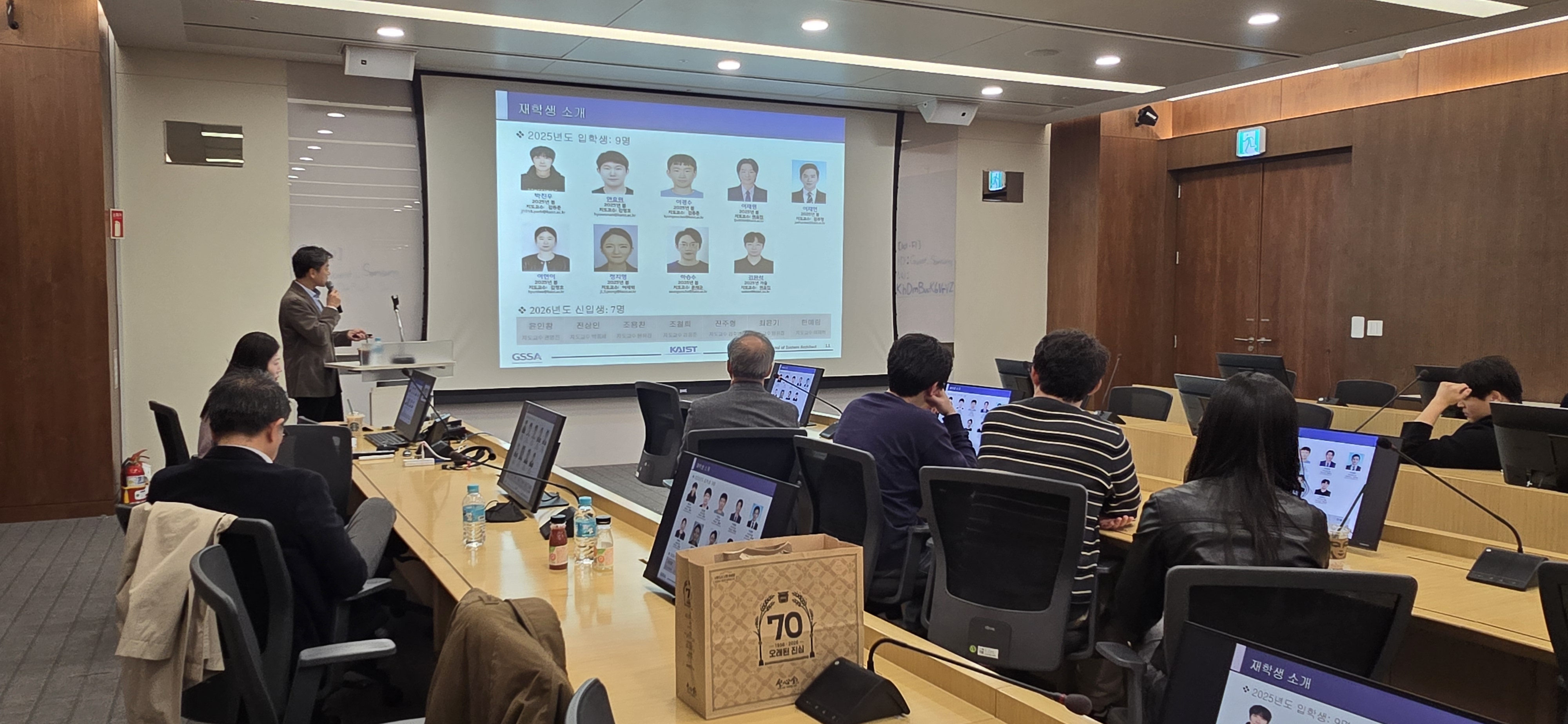 이날 행사에는 책임교수님과 부책임교수님, 학생지도교수님, 그리고 재학생 3명이 함께 자리하였습니다. 책임교수님과 부책임교수님의 인사말씀을 시작으로, 학생지도교수님께서 시스템아키텍트대학원의 교육과정과 연구 분야, 운영 방향에 대해 상세히 소개해 주셨습니다.